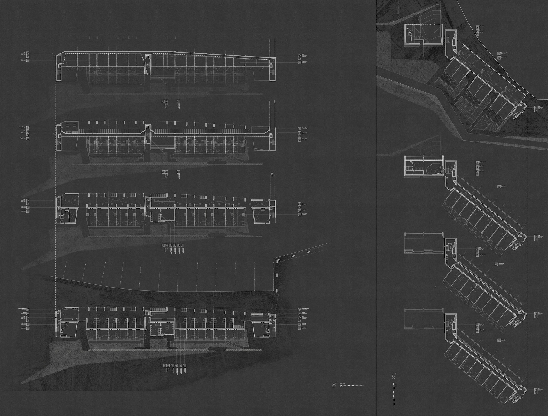 Speculative developments, masterplans and all works of architecture are a form of chronotopic speculation. Control is fleeting. The confluence of forces that must navigated on the long road of architectural production means the architect is only one voice in a melee. The scored masterplan is a tool for communicating an architectural specificity that acknowledges this inevitable co-authorship of the design by others.