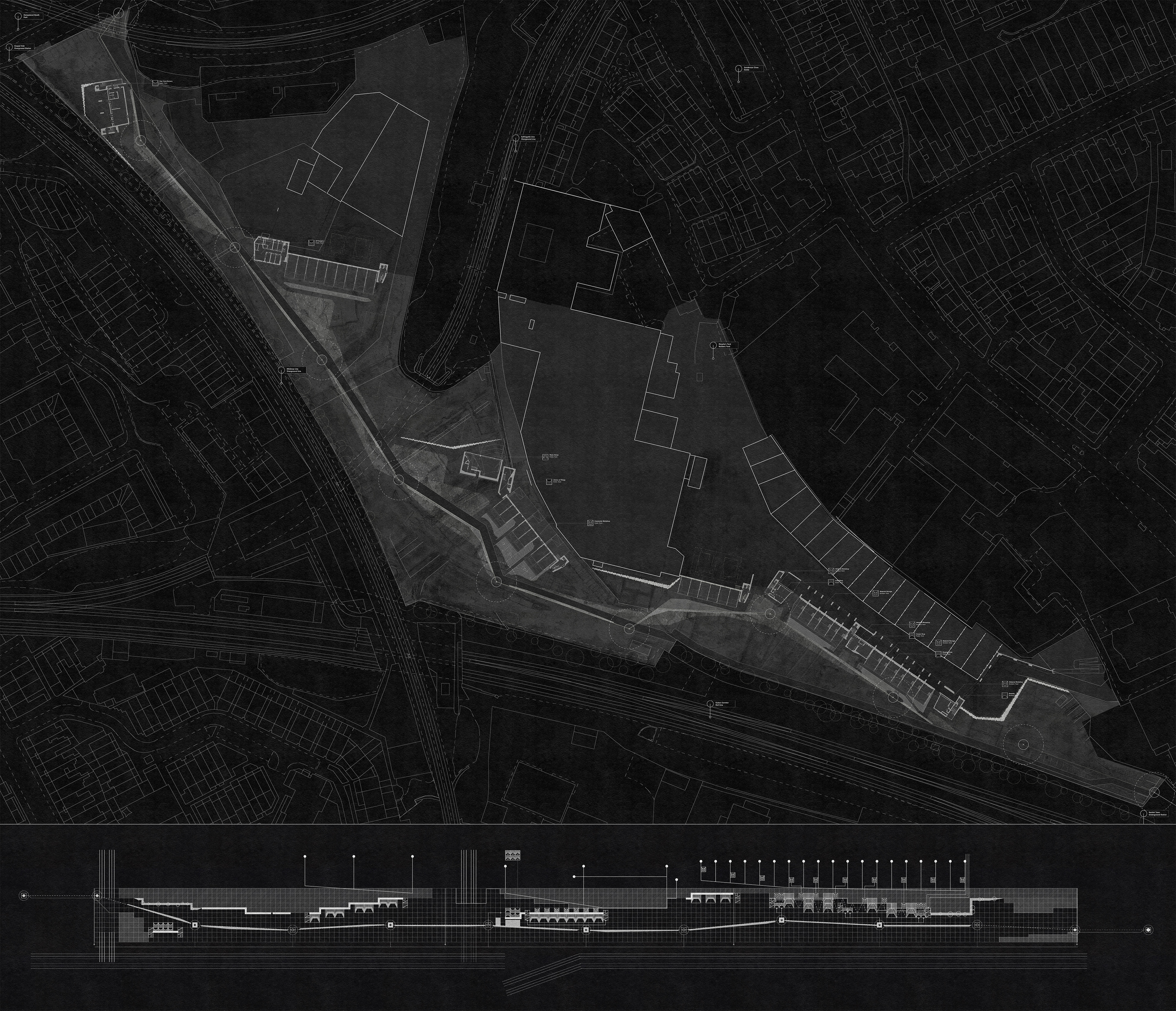 In critique of the 2022 mixed-use planning proposal for Murphy’s Yard in Kentish Town the project retains the existing builder’s yard beside new homes and community amenities. Considering what we are willing to live alongside and whether we have a right to peace in our homes.