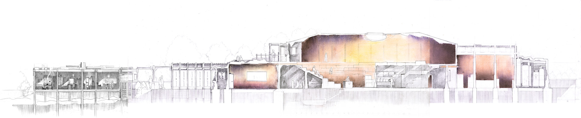 Situated in the filter beds, the project proposes an artist's studio that harnesses the site's unique microclimate, ideal for watercolour painting and pigment making.